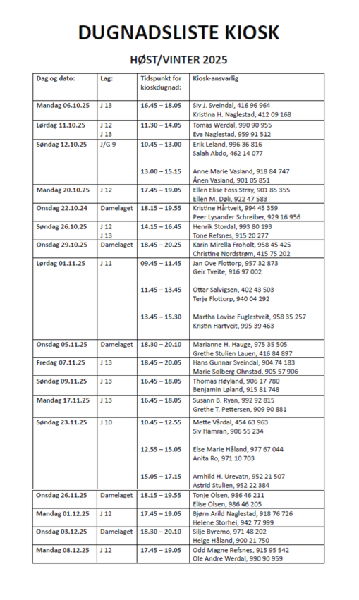 Passer ikke dagen du er satt opp, må du bytte innbyrdes.