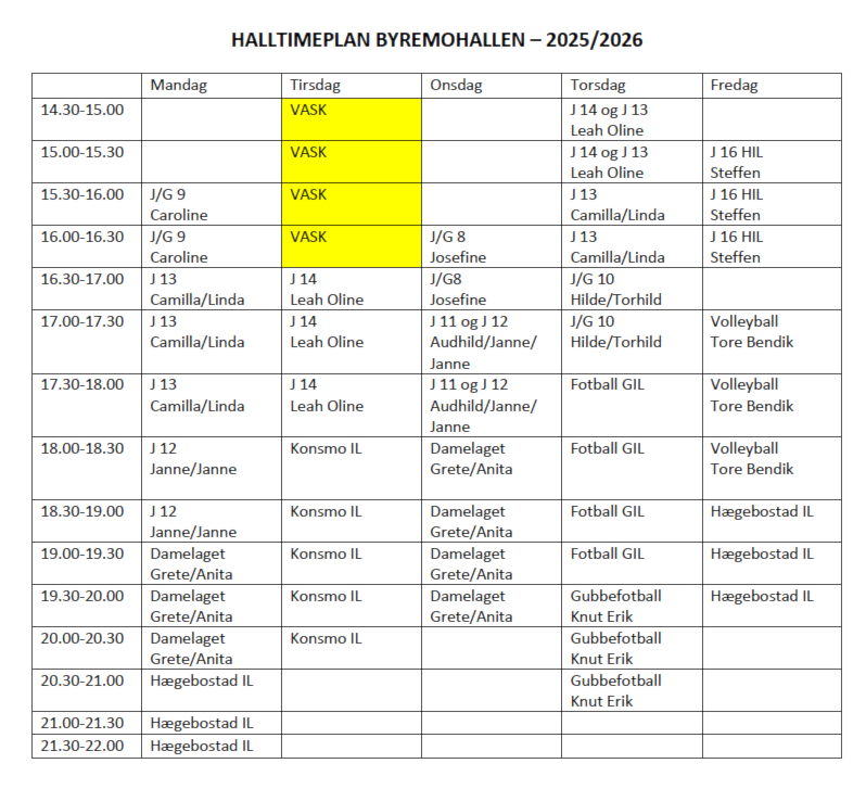 Ønsker du treningstid, ta kontakt med Eli Kristin Tveiten: elikristin@byremokulturbygg.no